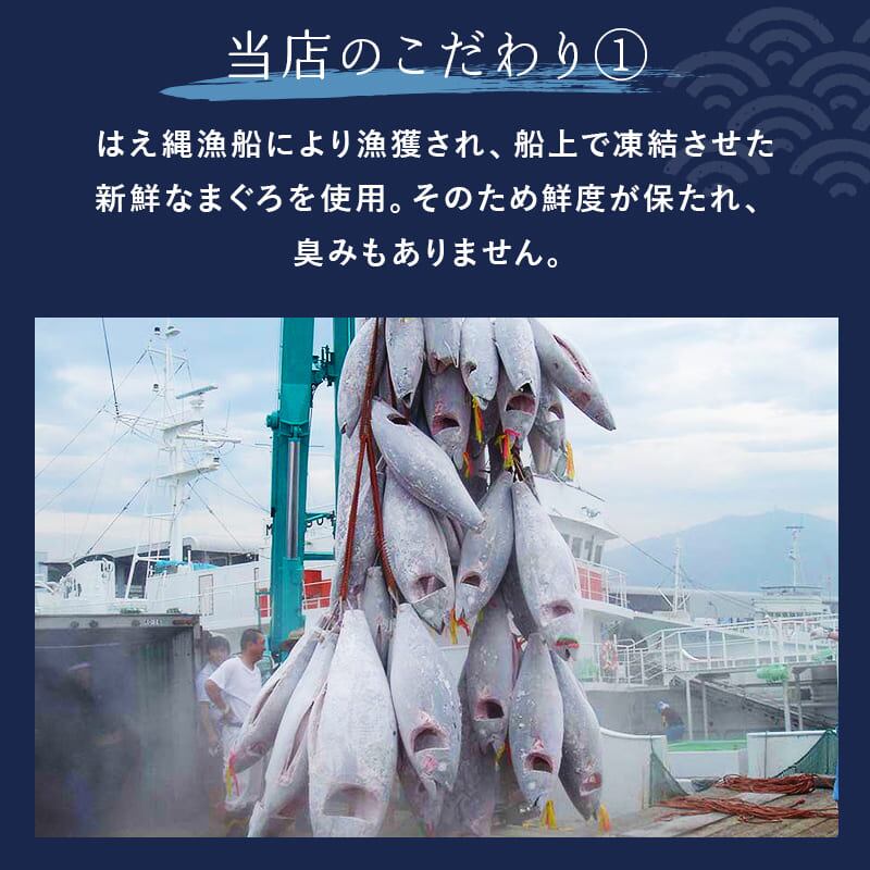 原材料:めばちまぐろ(太平洋)、醤油(大豆:遺伝子組み換えの混入を防ぐため分別)、砂糖、かつお節だし、発酵調味料